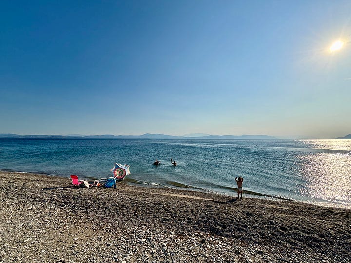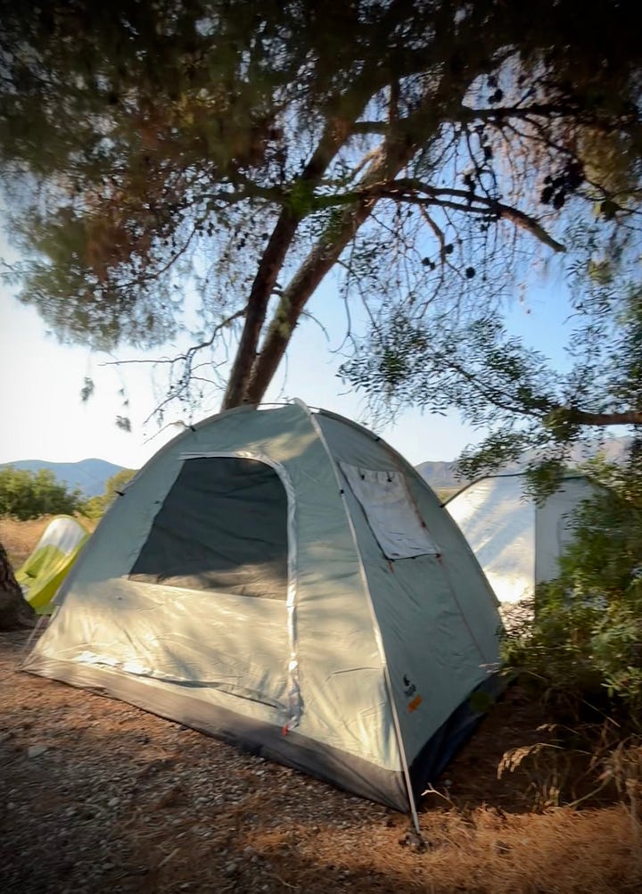 La semana pasada acampamos en la playa de Rovies, en Evia, una isla a una hora de Atenas y el primer lugar donde vivimos al llegar a Grecia en 2020.